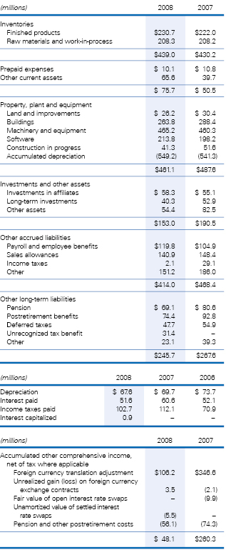 17. SUPPLEMENTAL FINANCIAL STATEMENT DATA Supplemental income statement, balance sheet and cash flow information follows: Dividends paid per share were $0.88 in 2008, $0.80 in 2007 and $0.72 in 2006.