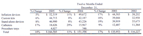 gross margins by 1.4% for 2005. Sales of procedure trays contributed 2.4% to the