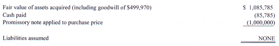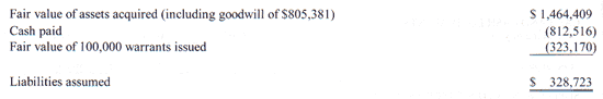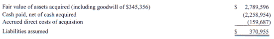 of $741,046. In conjunction with the acquisition, liabilities were assumed as