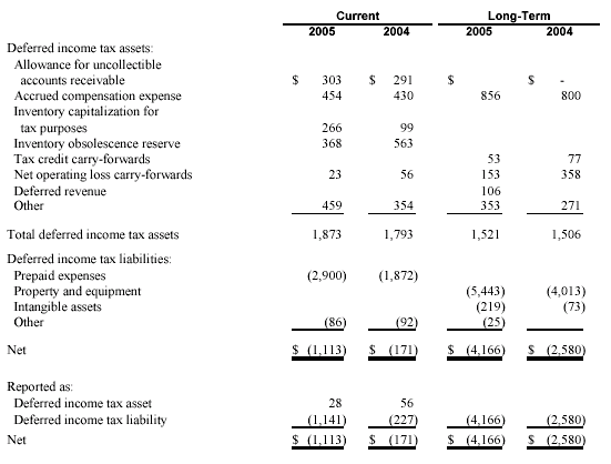 income tax assets and liabilities at December 31, 2005 and 2004 consisted of the