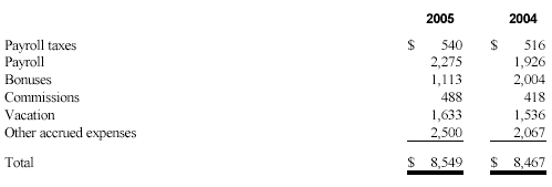 Debt—Long-term debt consisted of the following at December 31, 2005