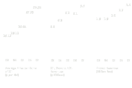 Success for an exploration and production company can be measured in two important ways: by how much oil and natural gas we profitably produce today and tomorrow. Devon excelled in 2007 by both measures. On an oil-equivalent basis, we increased annual production from continuing operations by 12%, to 224 million barrels. We expect to grow production further in 2008 to between 240 million and 247 million equivalent barrels.