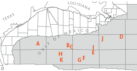 - Includes 32 blocks located offshore Texas, Louisiana, and Alabama.