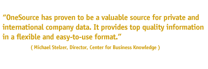 of both external and internally generated content. OneSource is a valuable source of information because of its ability to deliver relevant and fully integrated company, financial and industry information, which has allowed staff worldwide to spend less time searching for business information and more time using it.