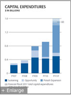 Our cash flow not only provided substantial fuel for our planned investments, but allowed us to enhance returns for our shareholders. In December 2009, Mosaic paid a special dividend of nearly $580 million to shareholders, or $1.30 per share, reflecting our strong balance sheet and cash position, which totaled $2.5 billion as of May 31, 2010. We nearly tripled historical capital expenditures with investments over $900 million this year and plan to exceed this level next year as we advance our potash expansion plans.