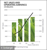Like other companies, fiscal 2010 was a transitional year. Net sales totaled $6.8 billion compared to $10.3 billion in fiscal 2009, primarily due to a decline in sales volumes and lower selling prices, resulting from weak agricultural fundamentals and industry demand during the first half of the year. However, our financial performance improved as agricultural fundamentals began to recover in the second half of the year. We are well positioned to thrive as demand returns and grows.
