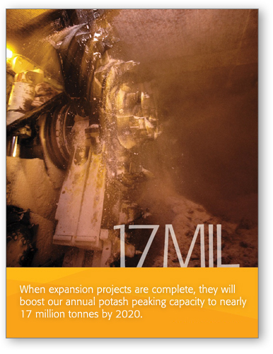 We will strengthen our leadership position with our focused and measured expansion investment strategy. With a world-class infrastructure already in place, our brownfield expansions are more cost effective than building greenfield capacity. We believe we can create significant shareholder value through a series of phased, multi-year expansion initiatives at our three Canadian mine sites — Belle Plaine, Colonsay and Esterhazy.