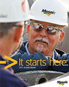 Our core values of sustainability and safety, combined with our portfolio of phosphate and potash, our financial strength and our unparalleled global reach help us to achieve our goal of being recognized as the best...