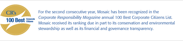 the trust of our customers is also crucial to ensuring a strong future. Today, Mosaic is exceptionally well positioned to capitalize on
