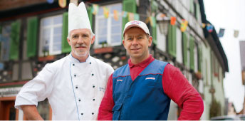 Hobart Germany’s field service division—the largest dedicated service organization covering commercial food equipment in Europe—has technicians and call-center staff available 24/7, equipped with GPS and mobile devices for fast, efficient service calls. Additional service products, like water treatment chemicals, help ensure optimal equipment performance. And soon, innovative new docutronic technology will enable real-time monitoring of key operating parameters through communication links embedded in customers’ machines, providing an enhanced level of speed and responsiveness to their customers’ service needs and maintenance requirements.