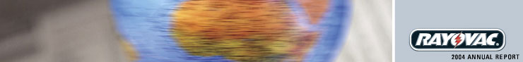 At Rayovac Corporation, we ascribe to the simple belief that if somethings worth doing, its worth doing right. This uncomplicated approach to our business is not only inherent in Rayovacs culture, its evident in every activity we pursue. We demonstrated this fact in fiscal 2004 by carefully executing our growth strategy, taking a number of steps to become a larger, more diversified consumer products company that can serve the increasingly global demands of the worlds top retailers. In the process, we delivered a host of impressive operating achievements and posted record financial results. As a result, we succeeded in making 2004 another year in which we not only did things right, we did them extremely well.