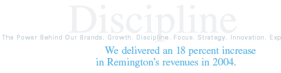 By applying our proven disciplines to our integration of Remington, we completed the process ahead of schedule, generating approximately $35 million in annual cost savings. At the same time, we capitalized on the strength of the Remington brand to drive an 18 percent increase in Remingtons revenues. We expect Remingtons products to be our fastest growing product line over the next several years.
