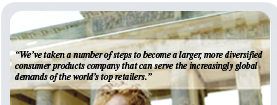 positionsa timely strategy in light of the global nature of retailing today. We are now able to offer the worlds largest retailers the innovative products and the stringent customer service levels they require to compete on a worldwide basis. Our vision is to grow alongside these large customers so that we can support them virtually anywhere in the world they choose to operate.