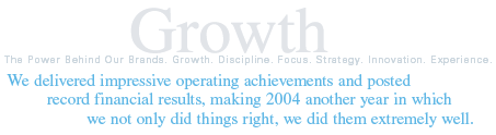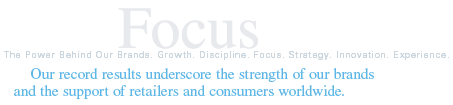 In a fitting conclusion to an exciting fiscal 2004, we are pleased to report substantial increases in net sales; net income; earnings before interest, taxes, depreciation and amortization (EBITDA); and diluted earnings per share (EPS), as well as improvements in all of our debt metrics. These record results stand as compelling testimony to the strength of our growing family of brands and to the enthusiastic support of retailers and consumers around the world.