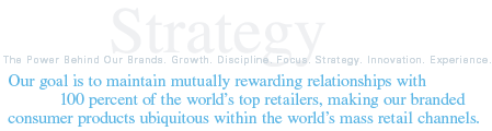 Rayovac has enjoyed an excellent track record in achieving symbiotic growth with our customers, and we are confident that we can realize our vision. Rayovacs products, for example, were offered in Sam Waltons first Wal-Mart and in every Wal-Mart since then. Our resounding success in supporting sophisticated retailers is reflected in our quality relationships with 19 of the worlds top 20 retailers, including Ahold, Aldi, Albertsons, Carrefour, Costco, Intermarche, Kroger, Metro, Sears, Target, Tesco, and The Home Depot, among others. Our goal is to maintain mutually rewarding relationships with 100 percent of the worlds top retailers, making our branded consumer products ubiquitous within the worlds mass retail channels.