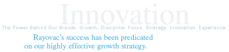 | | As a workplace, we have a sound strategy for long-term growth, along with a dedication to continuous process and cost improvements. We have solid acquisition disciplines and a track record of success in acquiring and integrating companies. Finally, we have a culture of entrepreneurship and empowerment, as well as a performance-oriented environment that puts personal success within the grasp of every Rayovac employee. |