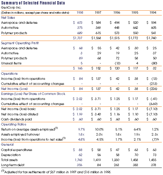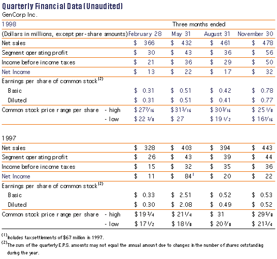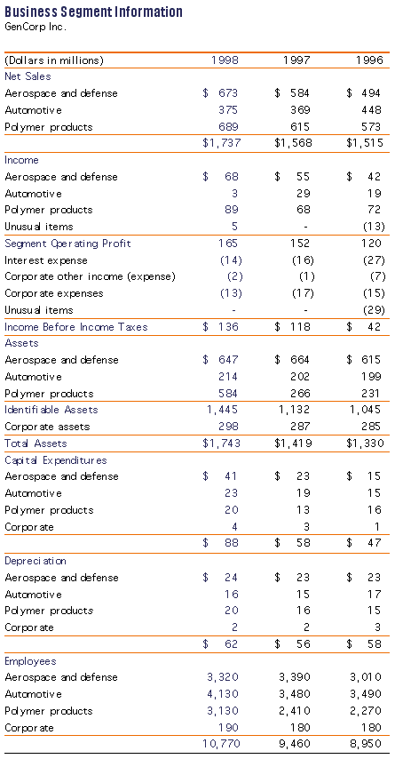 GenCorp's operations are located primarily in Canada, Europe and the United States. Inter-area sales are not significant to the total sales of any geographic area. Unusual items included in operating profit pertained to United States operations.