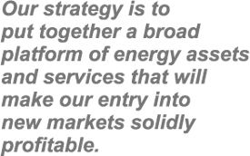 Internationally, we are targeting Asia Pacific, Latin America and Europe. As in the U.S., our strategy is to put together a broad platform of energy assets and services that will make our entry into new markets solidly profitable. Our goal is to build regional energy businesses encompassing much of the energy value chain.