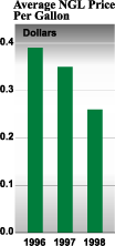 Earnings before interest and taxes for Field Services increased 3.3% in 1997 over 1996, primarily due to higher volumes as a result of acquisitions in 1996. Natural gas gathered and processed volumes increased 17.2%, and NGL production increased 37.8% in 1997 compared to 1996. Partially offsetting these increases were lower NGL prices of approximately $0.04 per gallon, or 8%, and higher natural gas prices.