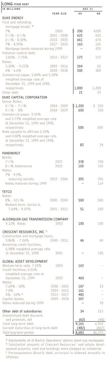 Annual maturities exclude $1,736 million of long-term debt that matures after 2004 which have call options whereby Duke Energy has the option to repay the debt early. Based on the years in which Duke Energy may first exercise their redemption options, $881 million could potentially be repaid in 2000, $328 million in 2002, $227 million in 2003, $200 million in 2004 and $100 million thereafter.