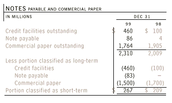 The weighted average interest rate on outstanding shortterm notes payable and commercial paper at December 31, 1999 and 1998 was 5.72% and 5.23%, respectively.