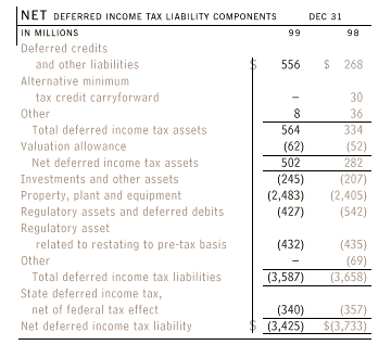The change in the net deferred income tax liability from 1998 to 1999 differs from the 1999 deferred income tax expense as a result of the removal of net deferred income tax liabilities due to the sale of the PEPL Companies and Trunkline LNG.