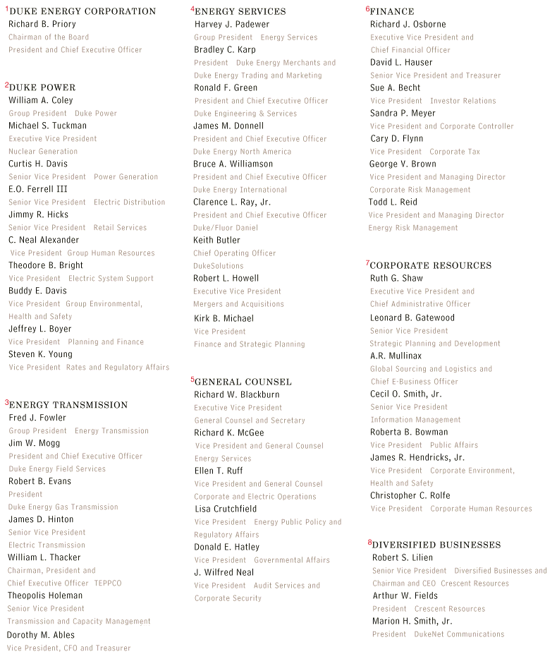 Principal Officers and Subsidiary Officers