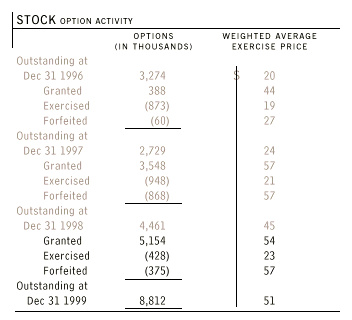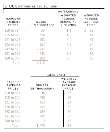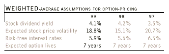 The weighted-average fair value of options granted was $10, $9 and $10 per option during 1999, 1998 and 1997, respectively. The fair value of each option grant was estimated on the date of grant using the Black-Scholes option-pricing model.