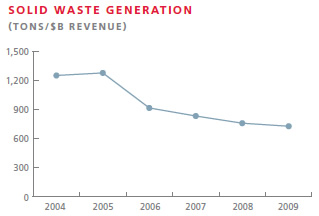 - Reduce landfill and incinerated waste disposal 25% normalized by revenue by 2013;