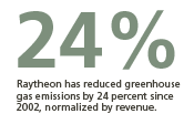 The role of human activity in greenhouse gas emissions and climate change has gained worldwide attention. Raytheon has long recognized the connection between energy and the environment, and has had a strong energy conservation program since the 1970s. More than 90 percent of the greenhouse gas (GHG) emissions attributable to the company are from energy consumption, primarily from purchasing electricity from third-party power plants. Some highlights of our energy initiatives and results are as follows: