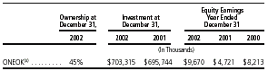 2000. ONEOK equity earnings for 2001 were lower due to charges recorded