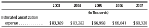 account amortization expense for 2003 and each of the four succeeding