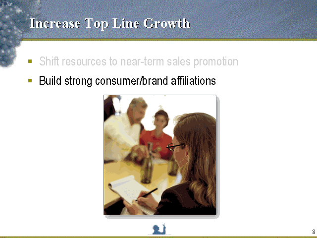 - This clear line of sight to our consumers and better understanding of how they build brand affiliations has been very valuable over the past couple of years – among other things it helped guide our successful launch of Robert Mondavi Private Selection in fiscal 2002 – and it continues to inform our product marketing.