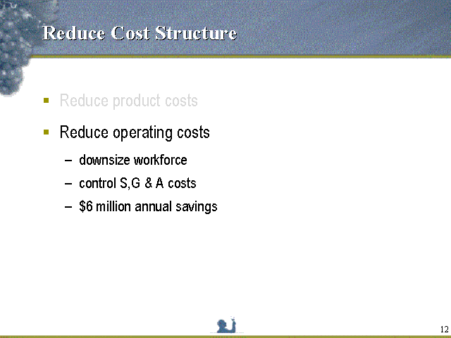 - The major element of this initiative is an SG&A workforce reduction that represents approximately 10% of our total workforce. This reduction will generate more than $6 million in annual savings. And we will remain committed to maintaining a leaner operating structure going forward so that we have resources to spend on marketing programs.