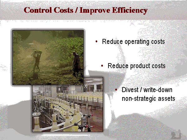 - We are also reducing product costs by sourcing a higher percentage of fruit from our own vineyards. This is something we have been working on for several years, and our investments are now paying off. In the 2002 harvest about 7% of our grapes came from vineyards we own; in 2004 it will be about 22%.