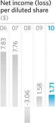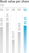 2010 benefited from the proactive steps taken over the prior three years. Net income improved by 9% to $928 million in 2010 versus 2009 and operating income* was $1.5 billion, despite another year of high regional catastrophe losses. We also accelerated our efforts to differentiate ourselves from the competition by launching new products and refining strategies for different customer segments. A share repurchase program was initiated with the goal of returning $1 billion to shareholders. Overall book value increased by 14.5% to $35.32 per share and the total return to shareholders was 8.8%.