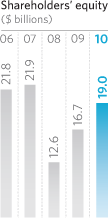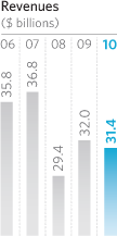 The investment strategies were well-executed and timed as the market returned to more “normal” levels. We continued to stay long on corporate credit. As part of the risk reduction strategy, commercial real estate holdings were reduced by $2.3 billion of amortized cost and municipal bond holdings were lowered by $5.5 billion of amortized cost in 2010. Given continued economic uncertainty, hedges against declines in equity prices and higher interest rates were maintained throughout the year. As a result of these actions and lower interest rates, investment income declined by 8%, which negatively impacted net income and return on equity. The overall value of our portfolio, however, did exceptionally well and moved into an unrealized gain position from an unrealized loss, a $3.7 billion increase.