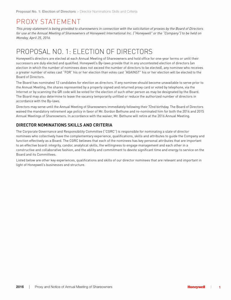 Proposal No. 5: 2016 Stock Plan for Non-Employee Directors of Honeywell International Inc.