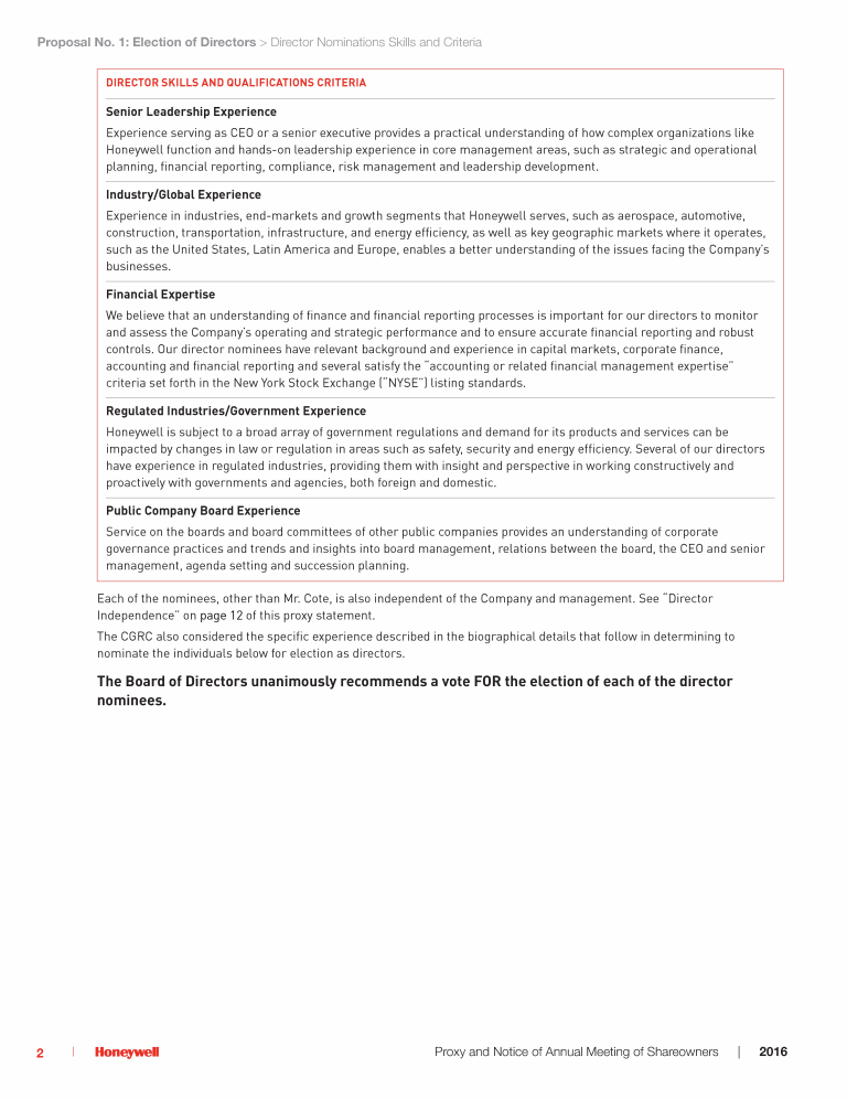 Proposal No. 5: 2016 Stock Plan for Non-Employee Directors of Honeywell International Inc.
