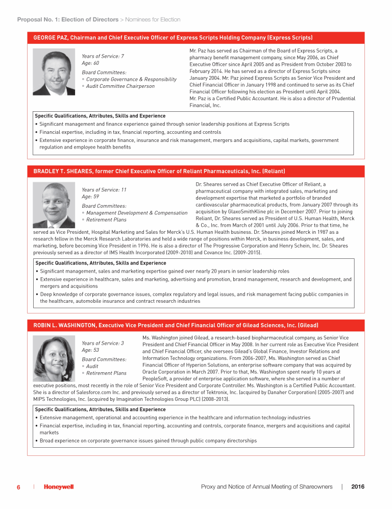 Proposal No. 5: 2016 Stock Plan for Non-Employee Directors of Honeywell International Inc.