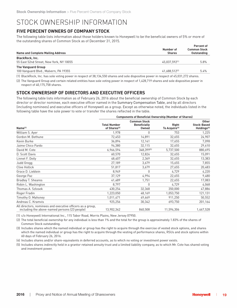 Proposal No. 5: 2016 Stock Plan for Non-Employee Directors of Honeywell International Inc.