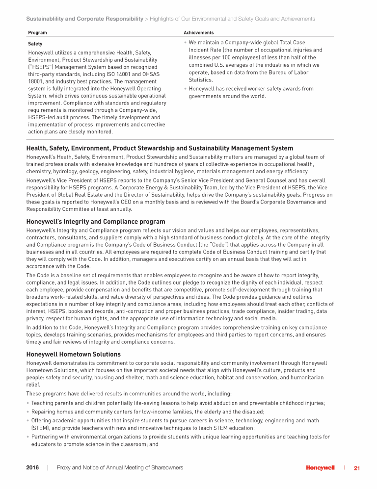 Proposal No. 5: 2016 Stock Plan for Non-Employee Directors of Honeywell International Inc.