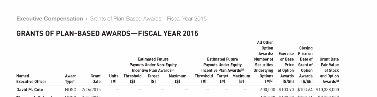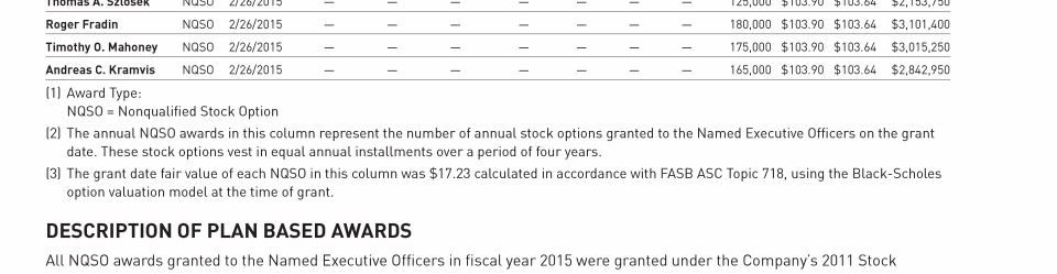Grants of Plan-Based Awards - Fiscal Year 2015