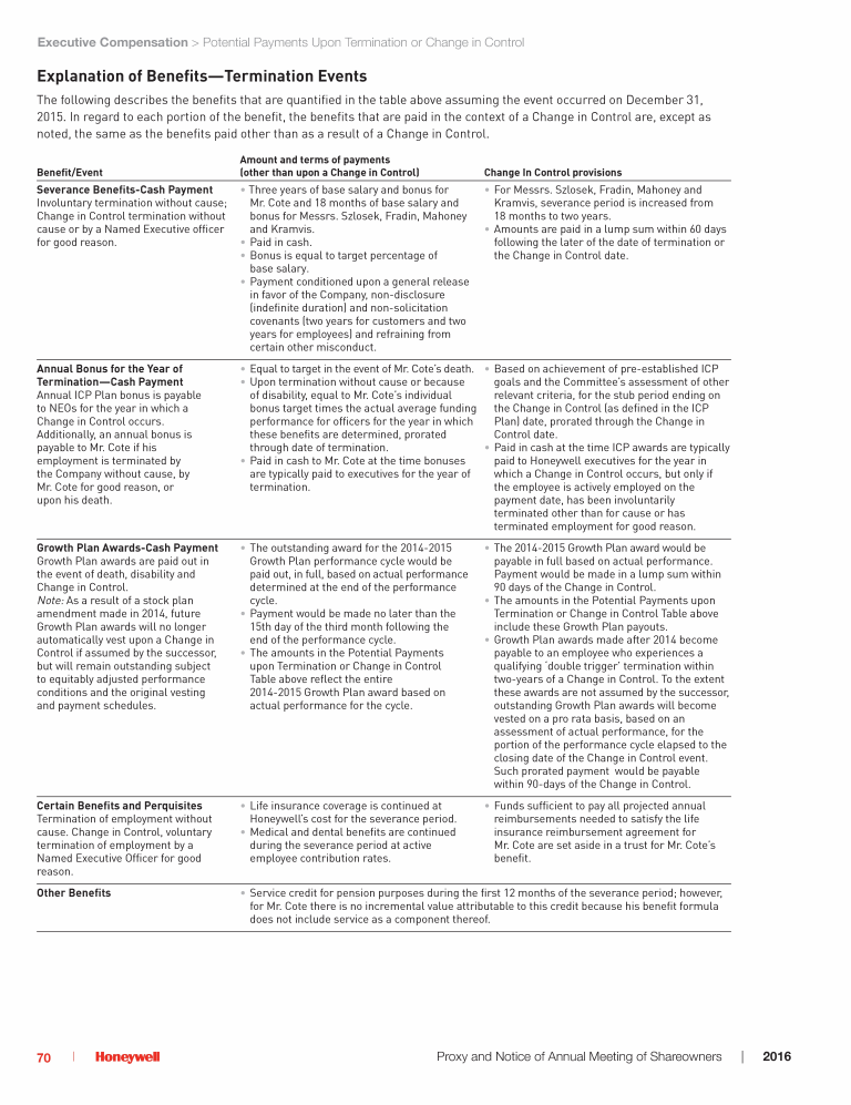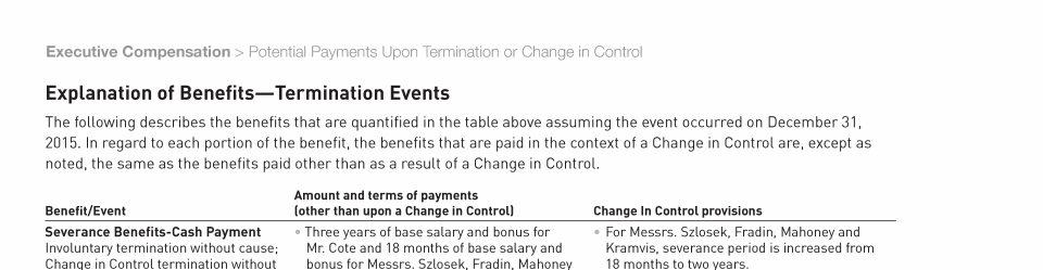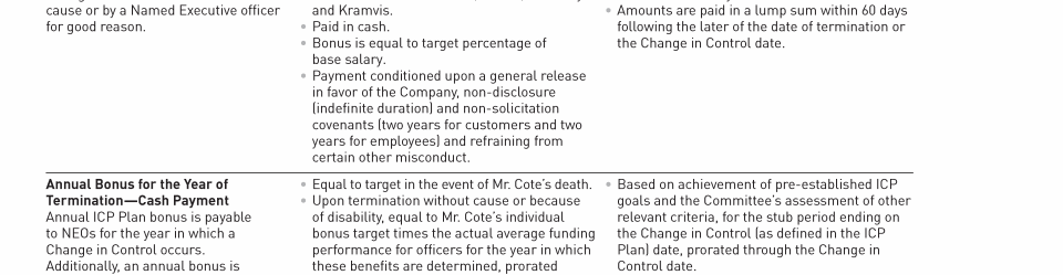 Potential Payments Upon Termination or Change in Control