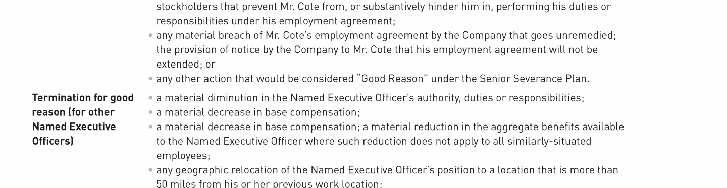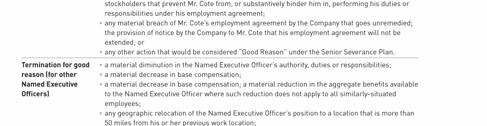 Potential Payments Upon Termination or Change in Control