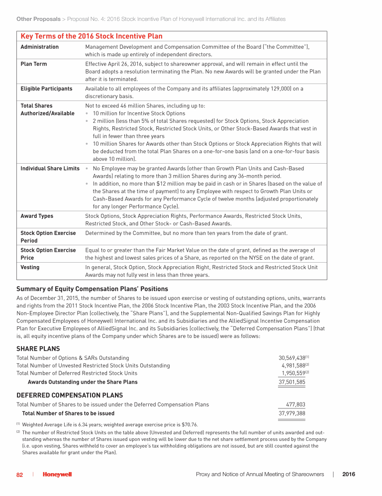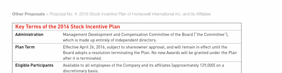 Proposal No. 4: 2016 Stock Incentive Plan of Honeywell International Inc. and its Affiliates