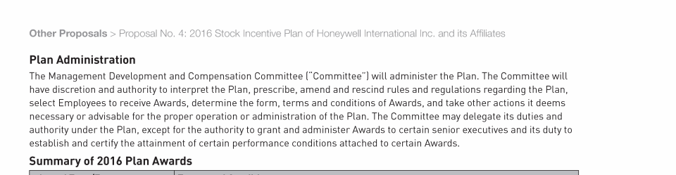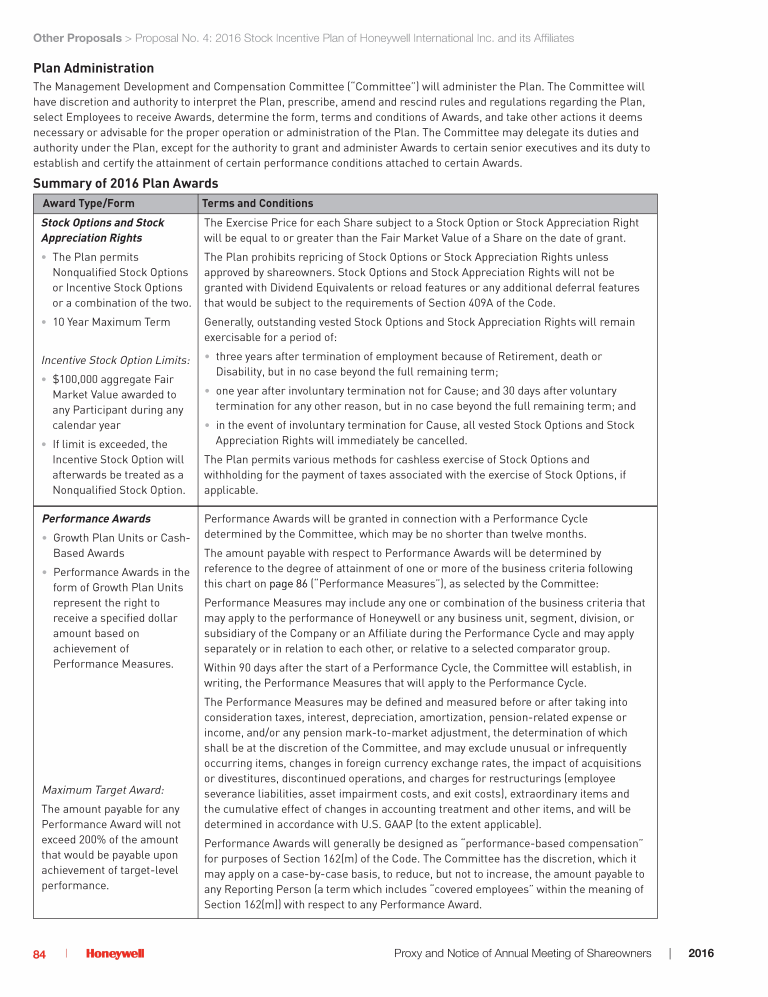 Proposal No. 4: 2016 Stock Incentive Plan of Honeywell International Inc. and its Affiliates