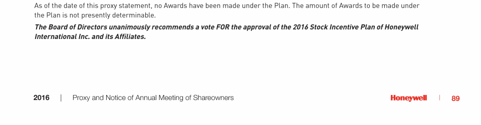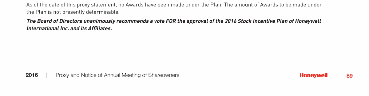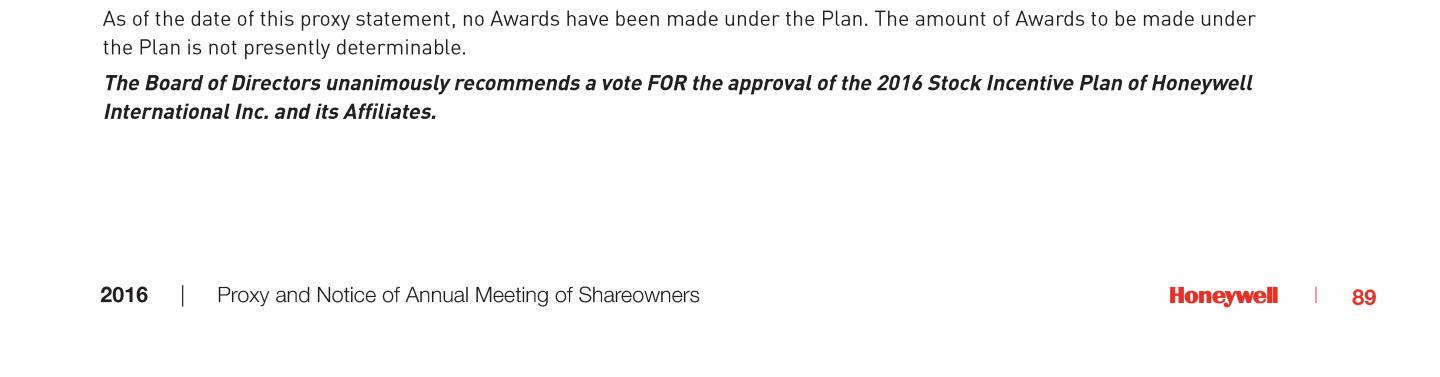 Proposal No. 5: 2016 Stock Plan for Non-Employee Directors of Honeywell International Inc.