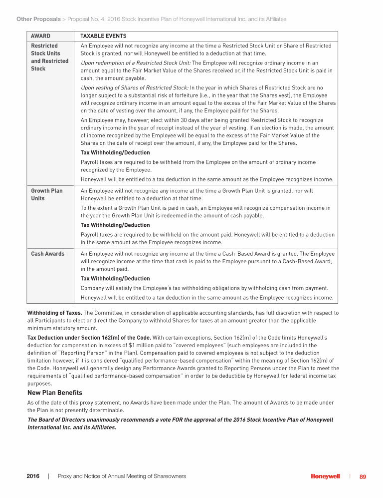 Proposal No. 4: 2016 Stock Incentive Plan of Honeywell International Inc. and its Affiliates