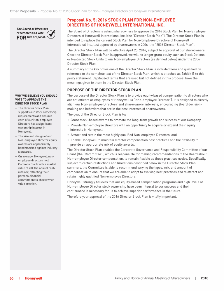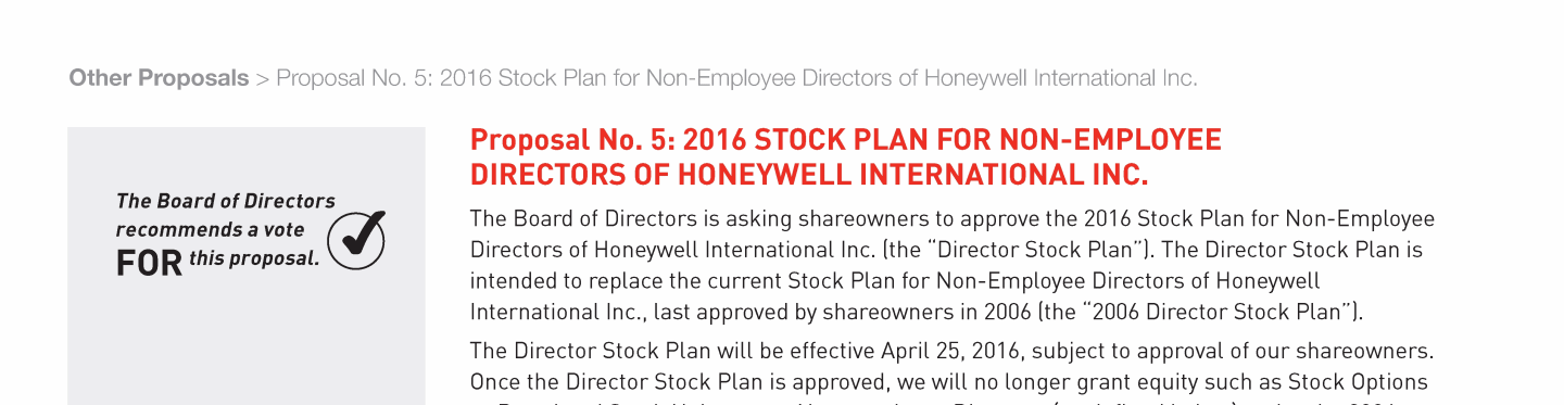 Proposal No. 5: 2016 Stock Plan for Non-Employee Directors of Honeywell International Inc.